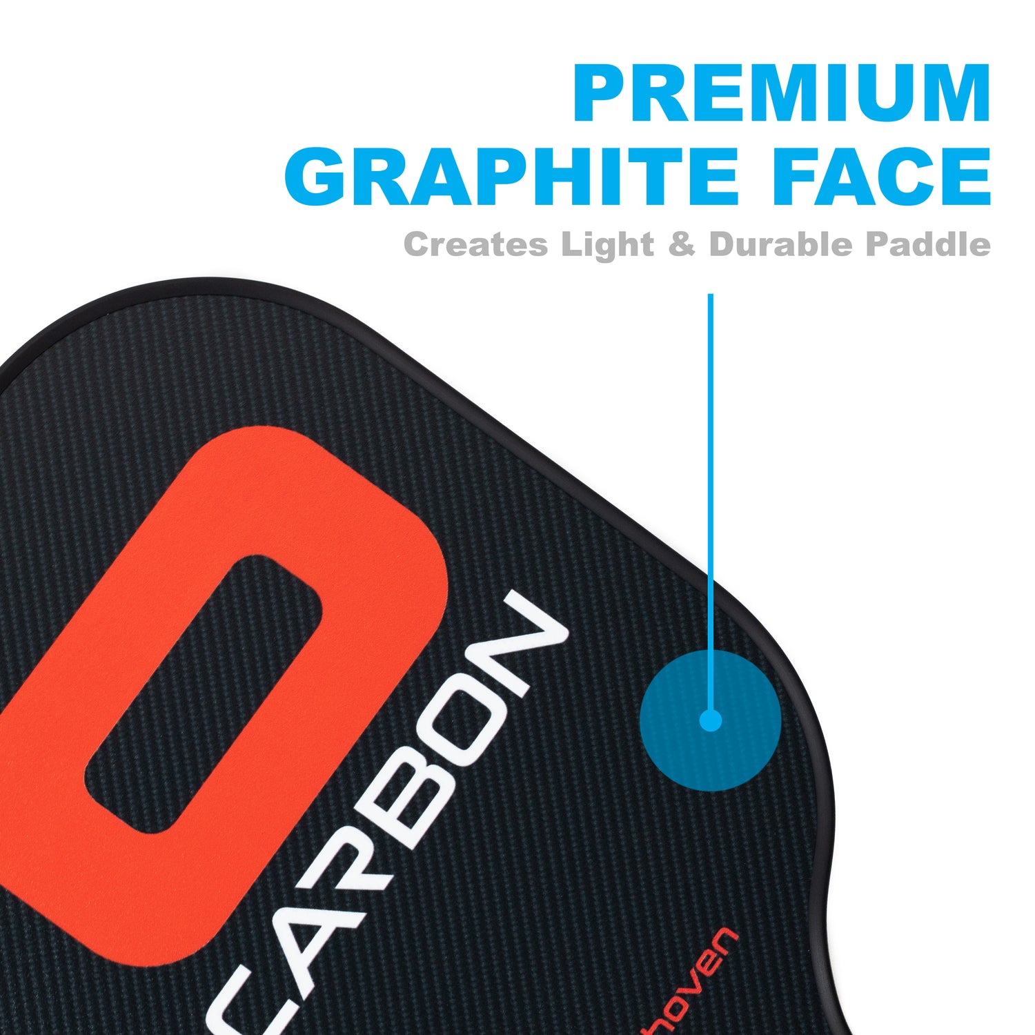The paddle surface is made of carbon fiber (or graphite), that provides the surface strength, durability and lightness. Carbon fiber is also used in aerospace, military, and competitive sports for these same reasons.